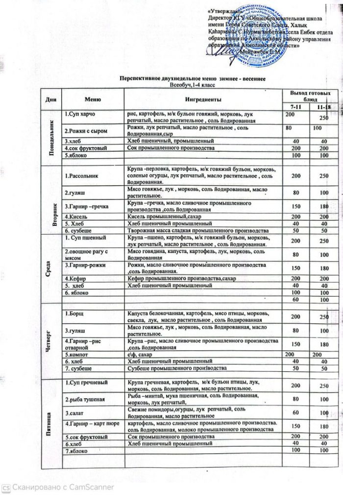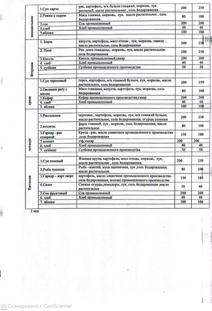 Перспективаның екі апталық мәзірі