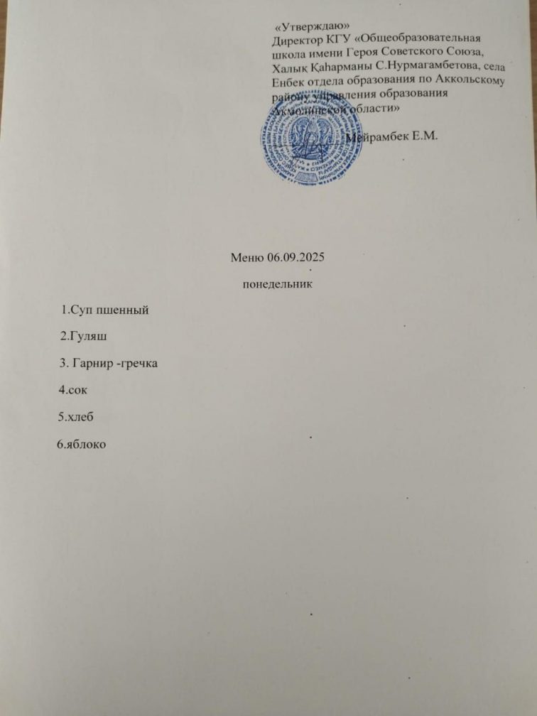 Тамақтану 06.10.25г