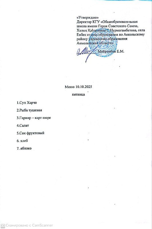 Тамақтану 10.10.25г