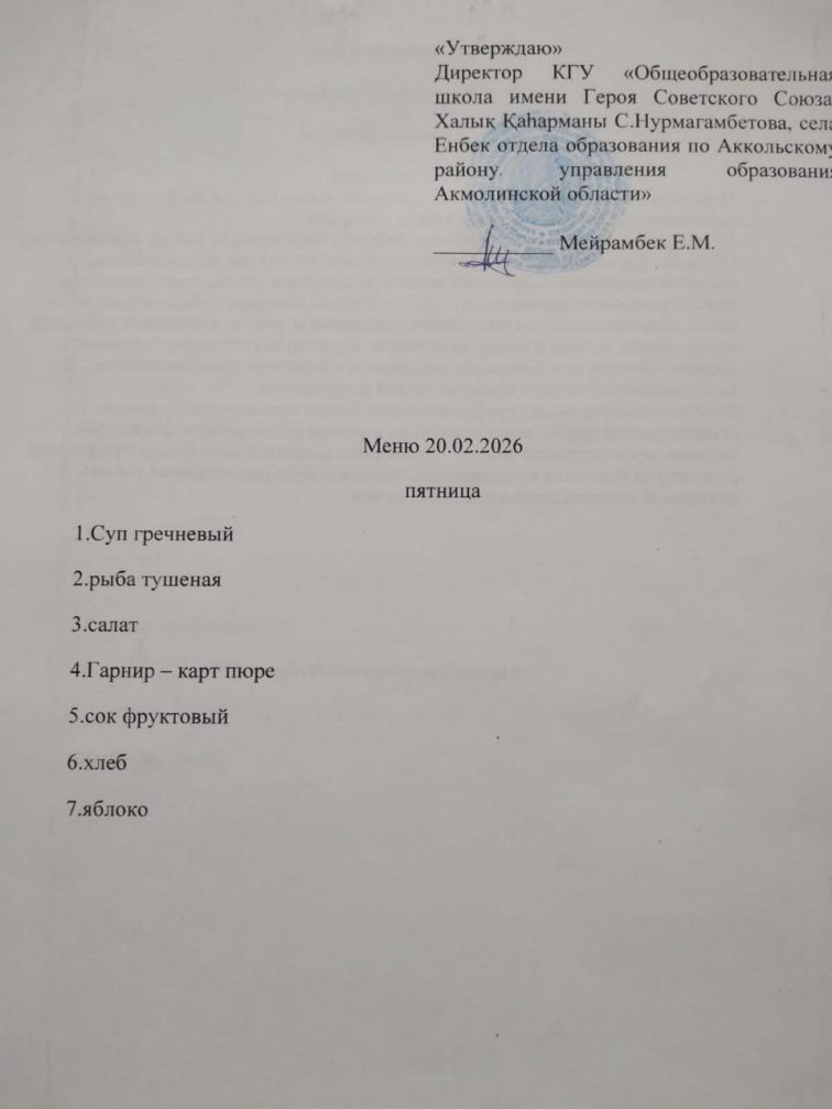 Коммунальное государственное учреждение «Школа-детский сад имени Героя Советского Союза Халық Қаһарманы С.Нурмагамбетова села Енбек отдела образования по Аккольскому району управления образования Акмолинской области"