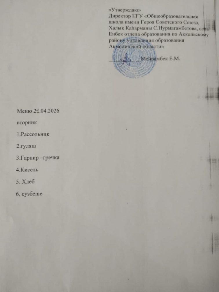Коммунальное государственное учреждение «Школа-детский сад имени Героя Советского Союза Халық Қаһарманы С.Нурмагамбетова села Енбек отдела образования по Аккольскому району управления образования Акмолинской области"