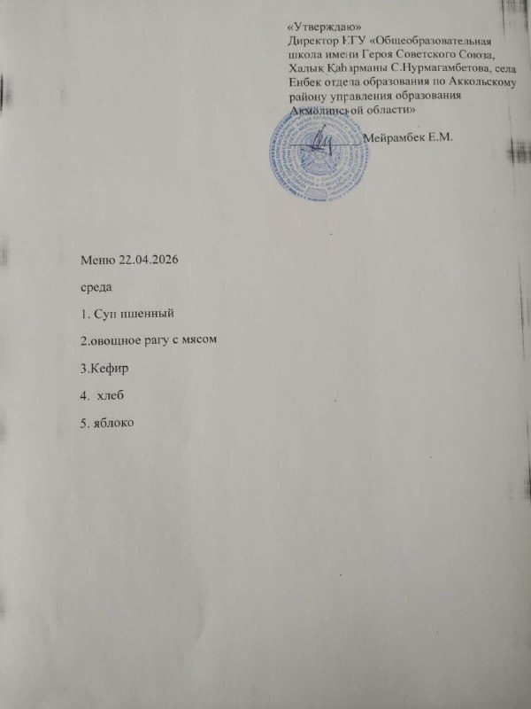 Коммунальное государственное учреждение «Школа-детский сад имени Героя Советского Союза Халық Қаһарманы С.Нурмагамбетова села Енбек отдела образования по Аккольскому району управления образования Акмолинской области"