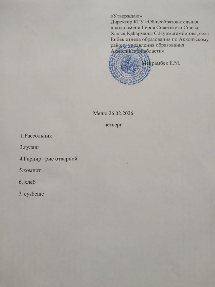 Коммунальное государственное учреждение «Школа-детский сад имени Героя Советского Союза Халық Қаһарманы С.Нурмагамбетова села Енбек отдела образования по Аккольскому району управления образования Акмолинской области"