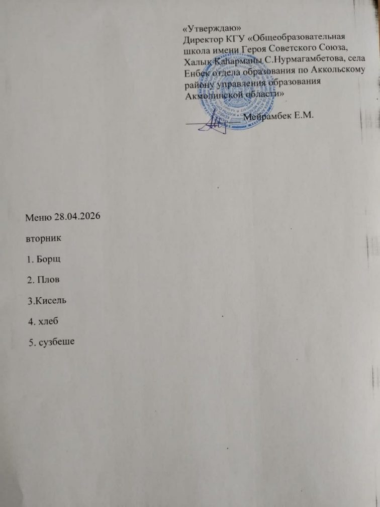 Тамақтану 28.04.26ж